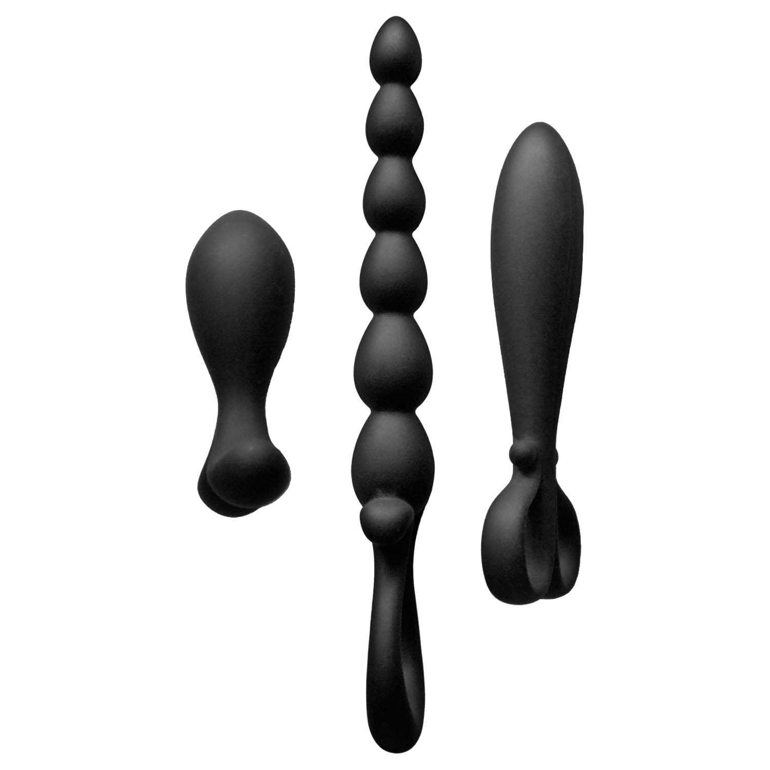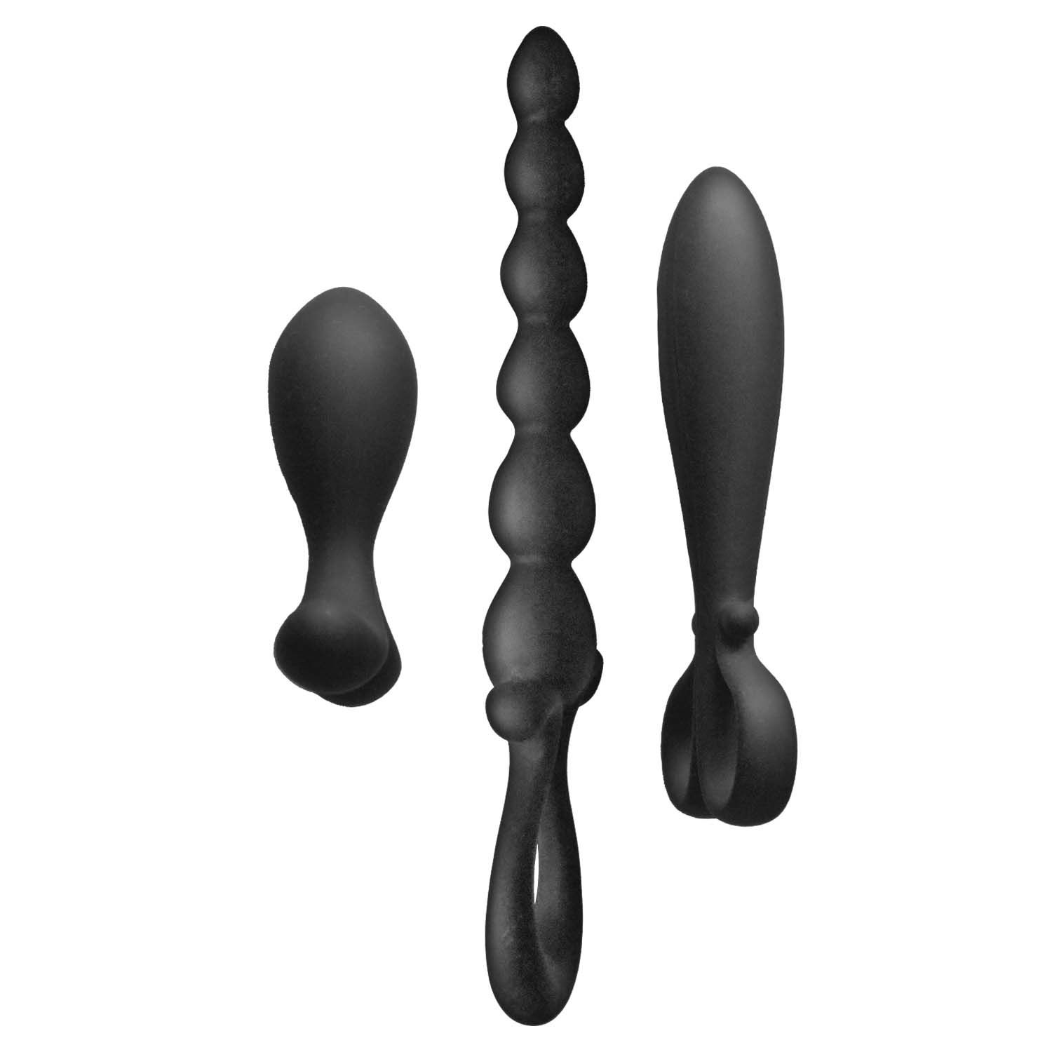 Meet the Nasstoys Trio Deluxe Anal Exploration Kit, a three-piece set designed to make exploring new sensations feel approachable, comfortable, and customizable. This kit includes three differently shaped anal play toys in graduating sizes, allowing you to move at your own pace as you discover what feels best for your body. Each piece features a tapered tip for easier insertion and a soft, flexible design that feels welcoming rather than intimidating. The variety of shapes includes an anal bead style, a longer probe shape, and a traditional plug shape, giving you multiple sensations and experiences in one thoughtfully curated set. Crafted from silky smooth, body-safe silicone, each toy is backdoor safe and can also be used vaginally for added versatility. Using a water-based lubricant will enhance comfort, improve glide, and help make each session more enjoyable, especially when transitioning between sizes. Cleanup is simple: just wash with toy cleaner or mild antibacterial hand soap after each use, rinse thoroughly, and allow to dry completely before storing. Whether you are new to anal play or looking to expand your collection with intentional variety, this exploration kit offers flexibility, comfort, and quality in one complete package.